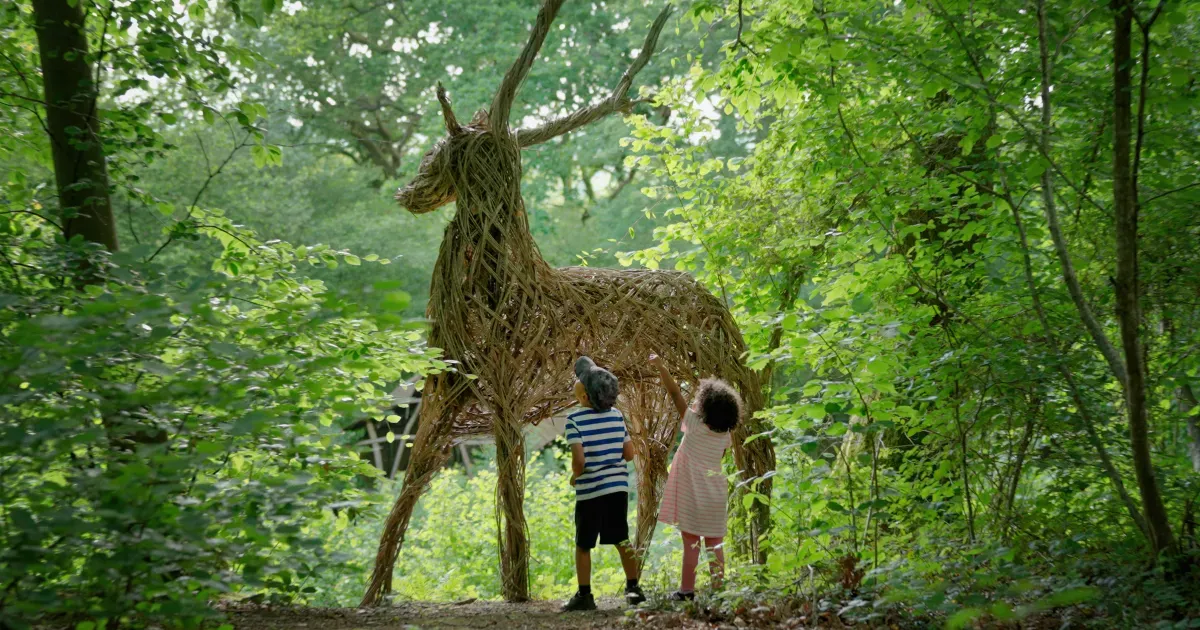 Jump, leap and weave through the hazel coppiced woodland transformed into a historic and inspiring natural gallery of hand-woven structures from oversized chairs to native favorites such as deer and badgers.